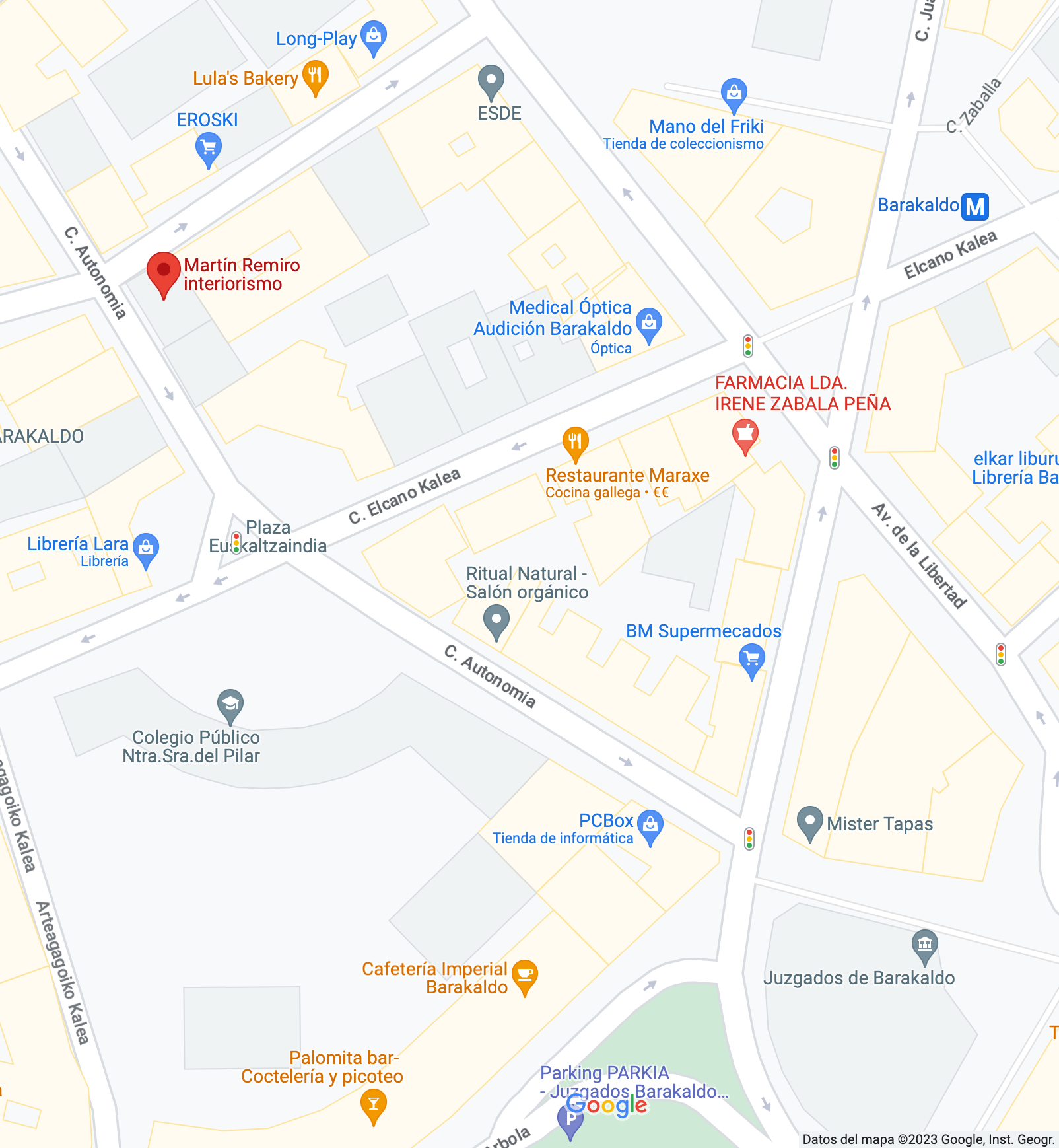 En cumplimiento del Reglamento General de Protección de datos 2016 / 679 de 27 de abril de 2016, de Protección de Datos de Carácter Personal, se informa que Martín Remiro interiorismo es responsable del tratamiento, con un fichero debidamente registrado en el Registro General de Protección de Datos, en el que se incluirán los datos personales que usted nos facilite, siendo sometidos a los controles y normas establecidos en el Reglamento de Medidas de Seguridad. La dirección del responsable del fichero es C/ Autonomia 24 local bajo derecha, 48902, Barakaldo, Bizkaia.